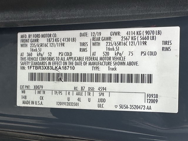 | VIN | 1FTBR3X83LKA18710 |