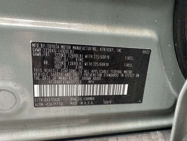 | VIN | 4T3B6RFV5NU097259 |